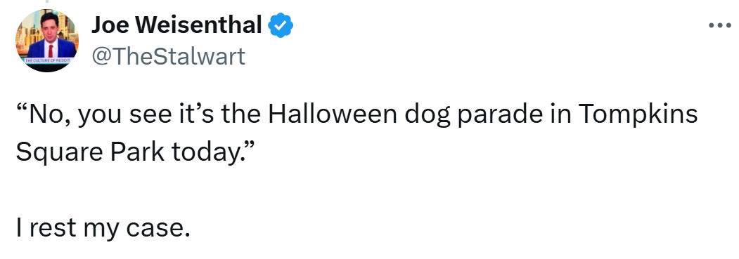 A couple of weekends ago, Bloomberg Editor-in-Chief Joe Weisenthal went viral for criticizing a Halloween Dog Parade, calling such gatherings “anti-social behavior” and expressing his disdain for a phenomenon called “Long Halloween.”