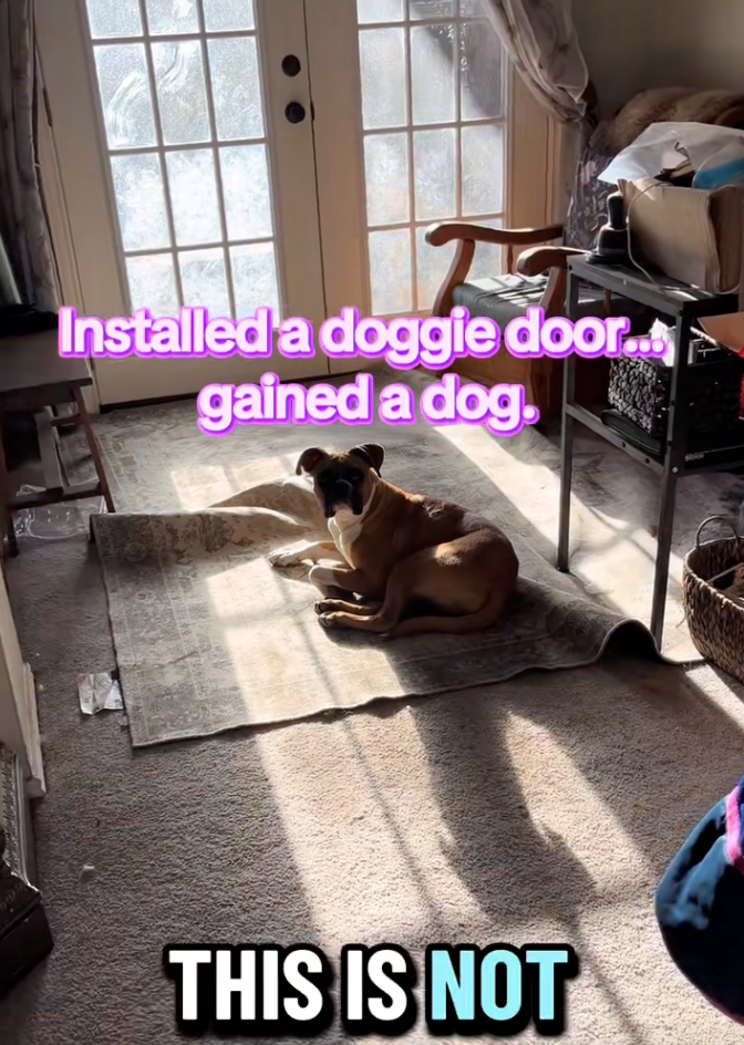 And then one day, BOOM. You decide to break the fence down. Well, you get a hole in the fence and you gain access into your besties' yard. And then, you realize the universe decided to join you in this plan and convinced your besties' hooman to install a doggie door for you to have even more access to play with your friends! Now you get to visit and even let yourself into the house before any hooman is even awake!
