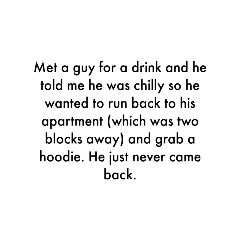 If you've ever been stood up, you know the pain. How could someone do that? There must be a real reason somewhere. Let us know if you figure it out.